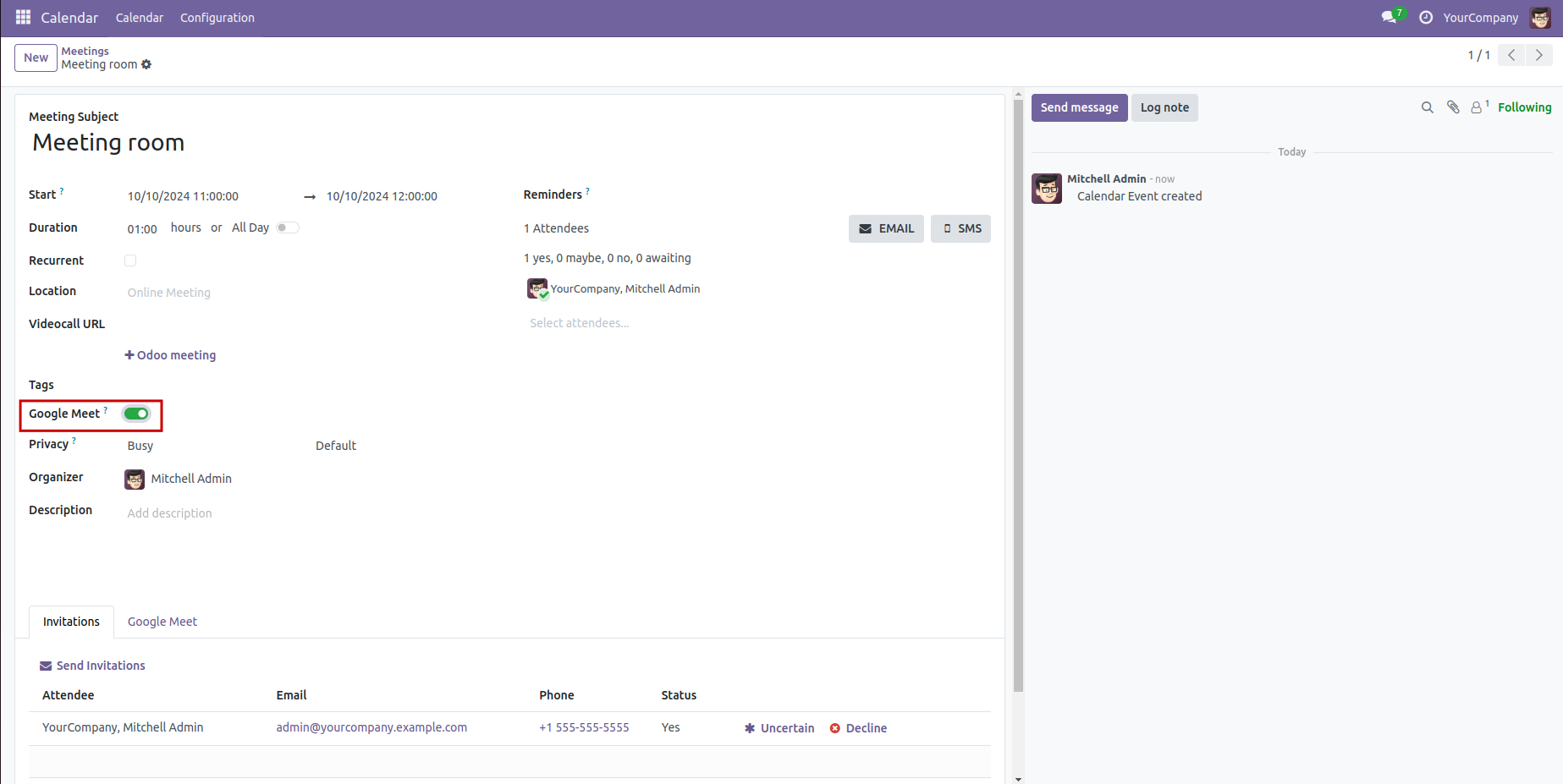Google Meet Calendar Integration allows to open google meet in odoo.