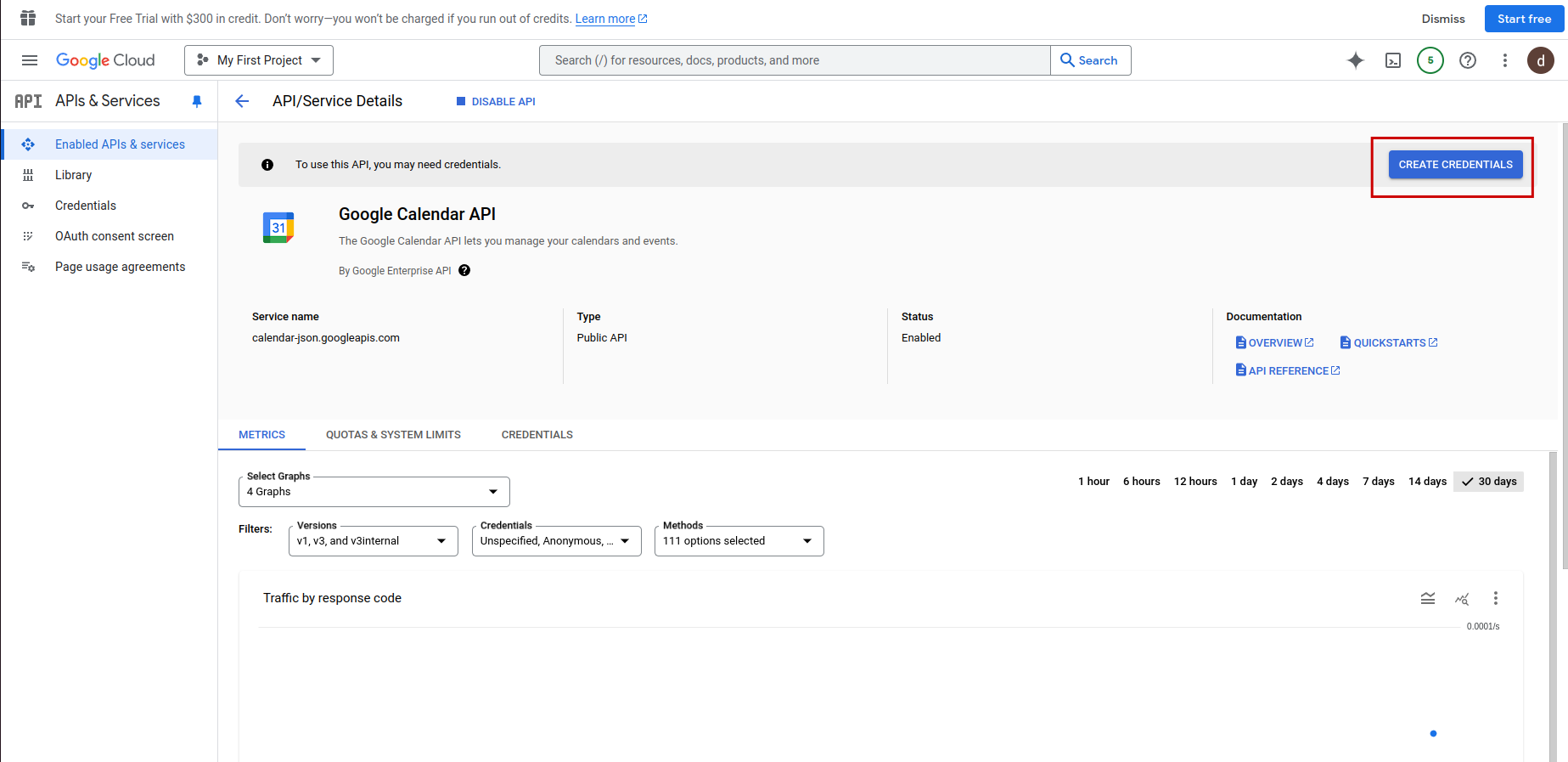 1. Sign in with your Google Account. To generate Google Calendar API credentials, Click HereClick Enable APIs and Services.