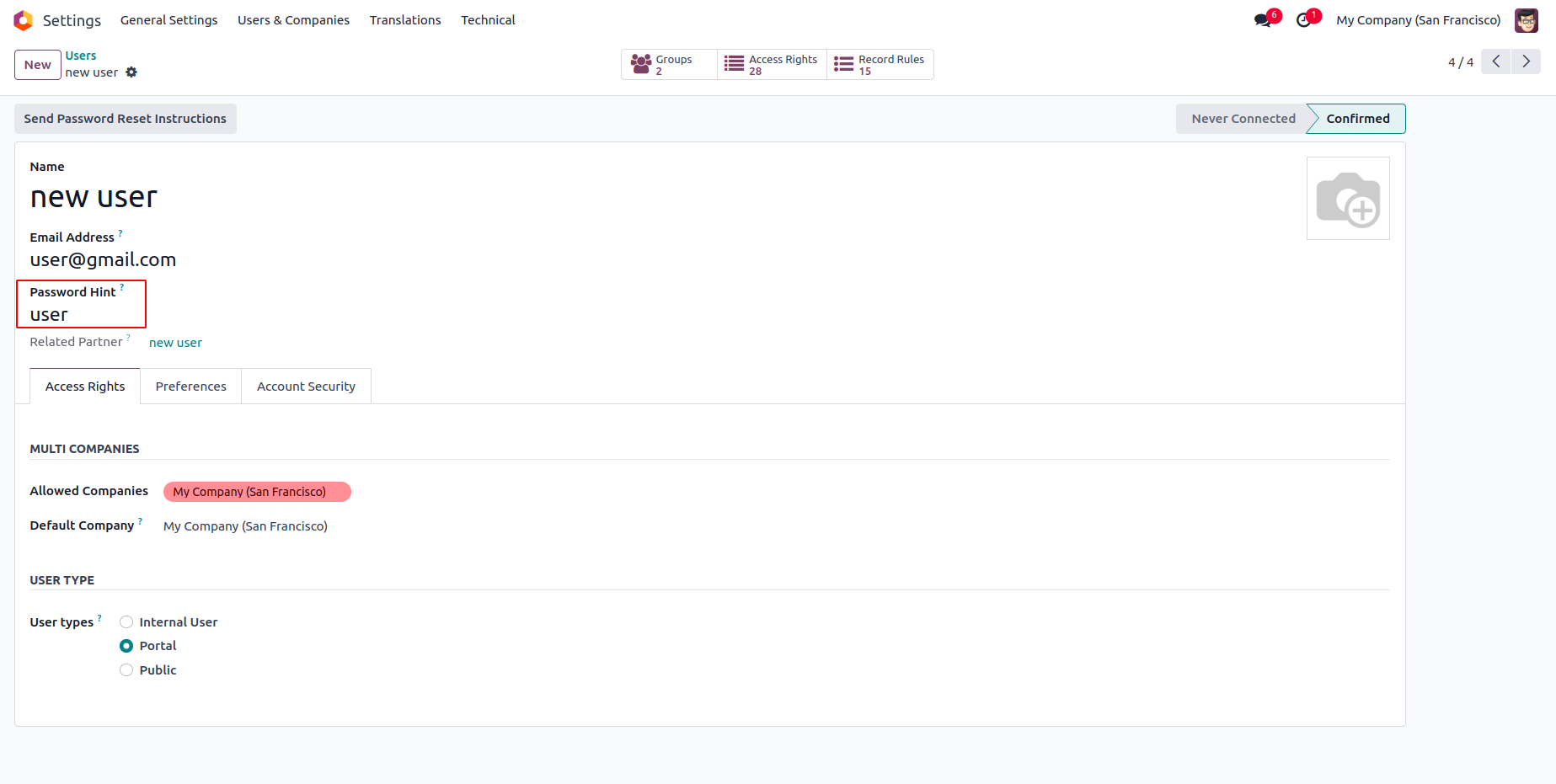 The Password Hint field in User form allows the User to set a Password Hint while Signing.
