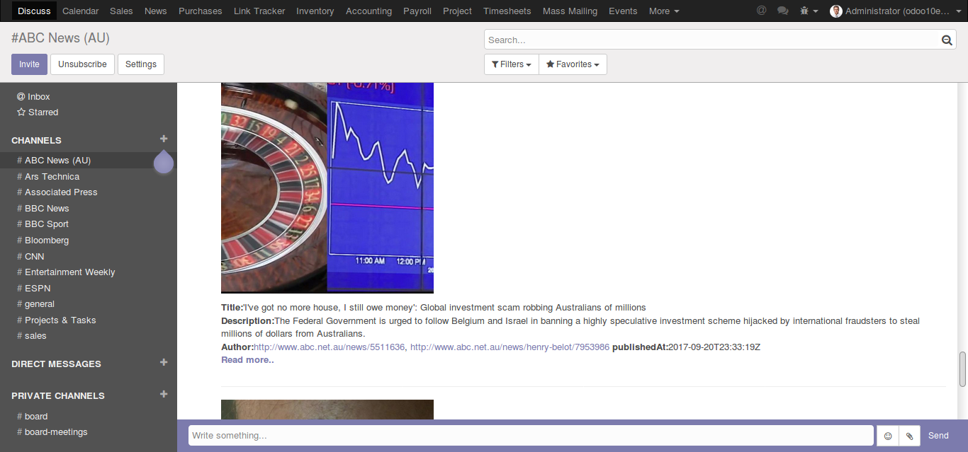 Subscribe to various news Channels provided under custom menu "NEWS". Subscribed News channels will be listed under Discuss Menu.