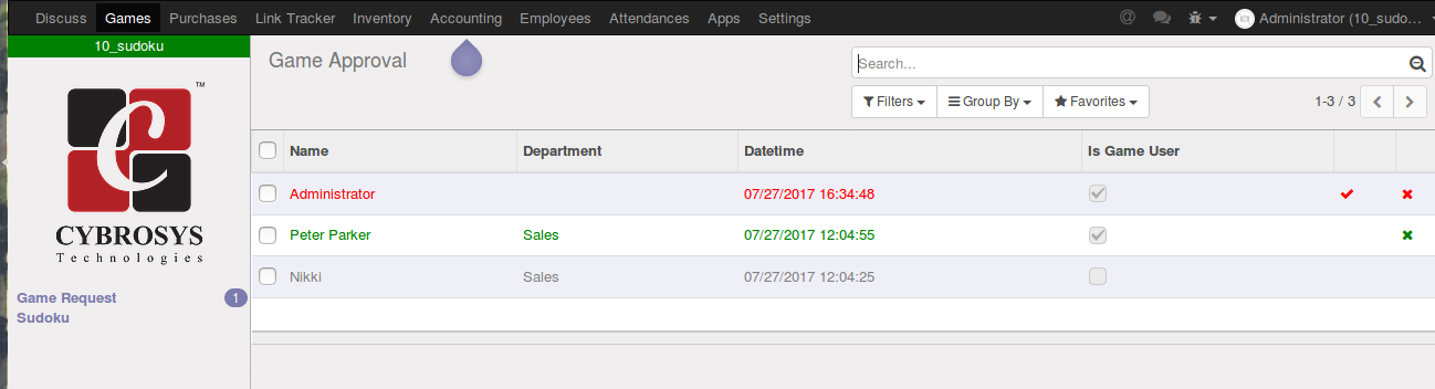 Ps:- if we directly give permission to play game, don't forget to remove Odoo Game Request"