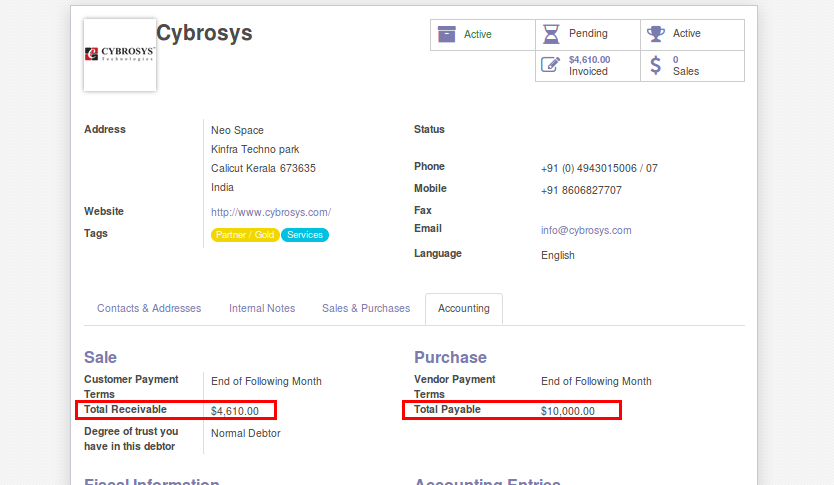 ☛ Amount payable and receivable is shown in the partner form ☛ No need to activate the developer mode to view this