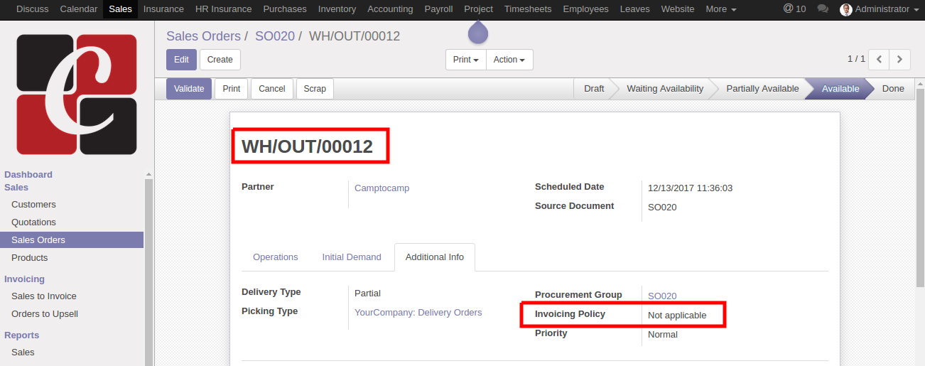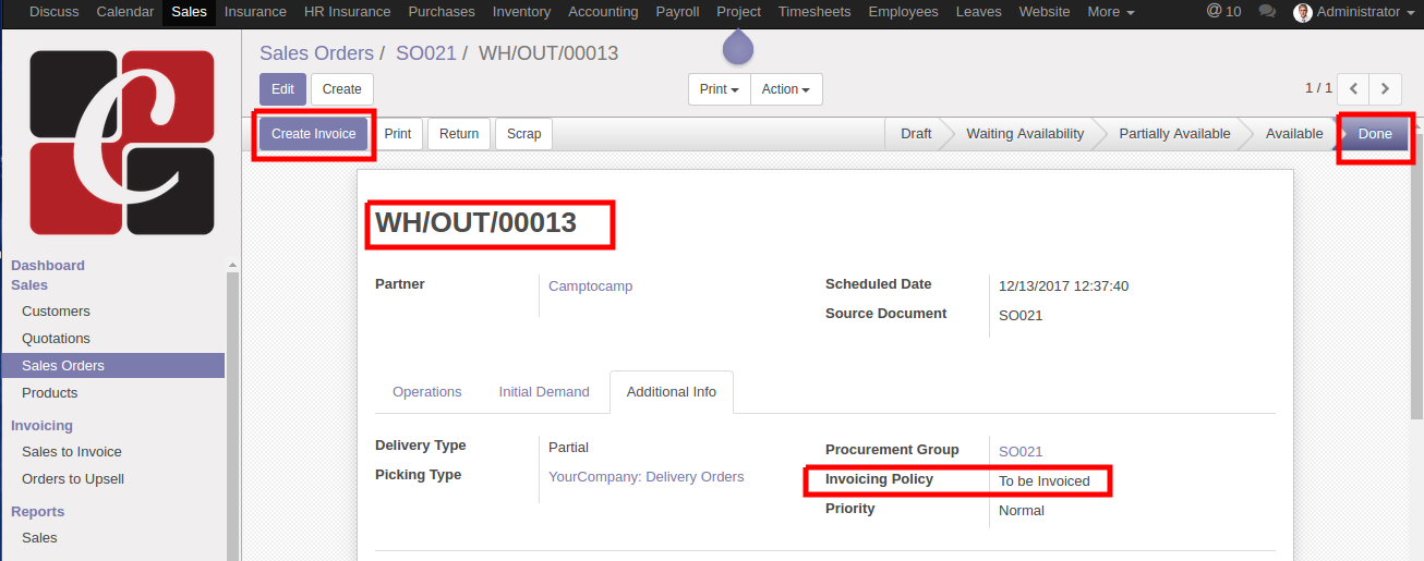 That is, Invoicing Policy set in Sale Order will get the high priority and Default settings will be considered only if the rest of the levels doesn't contain any Invoicing Policies.