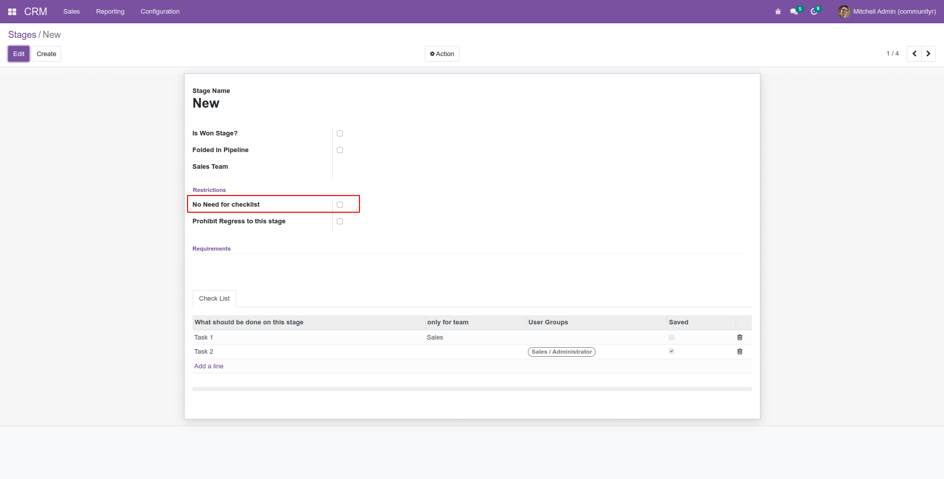 If this option checked in a stage, opportunity progressing from this stage does not require check list to be completed.