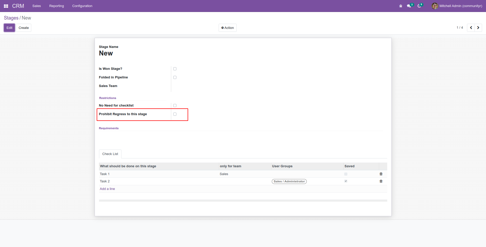 If this option checked in a stage, opportunities cannot be regressed to this stage.