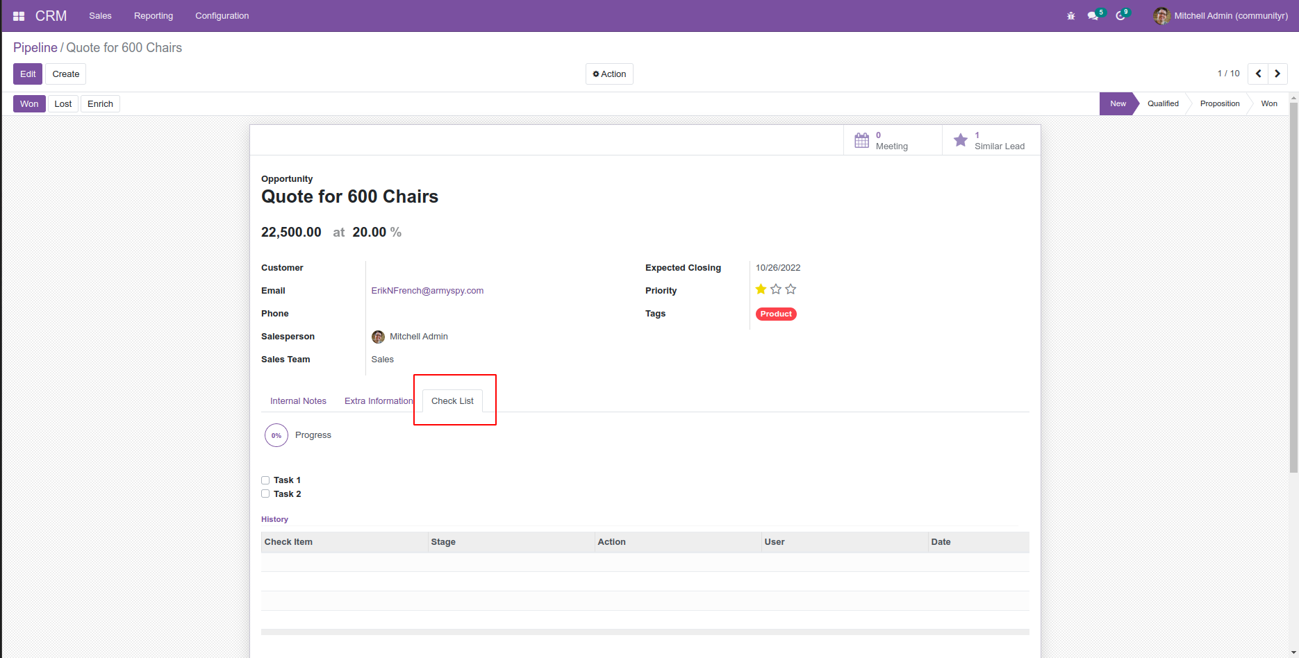 Making a customer from an opportunity is the goal of the CRM pipeline. To achieve that goal sales staff needs to undertake a specific sequence of actions or tasks. Each of those actions is important on the defined stage. For working as an efficient company The CRM is an important part. This app provides a checklist for each pipeline stage to control requirements, fulfillment and to make sure that each action/checklist item is fully approved by responsible users. So that it will be easier to manage through CRM pipelines.
