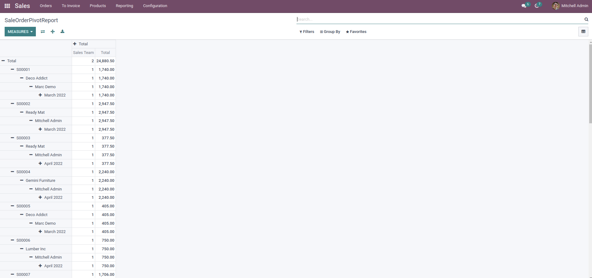In the Custom Pivot Report App, user can configure the menu, fields, and security for pivot reports. A user can easily set rows and measures for the pivot report.