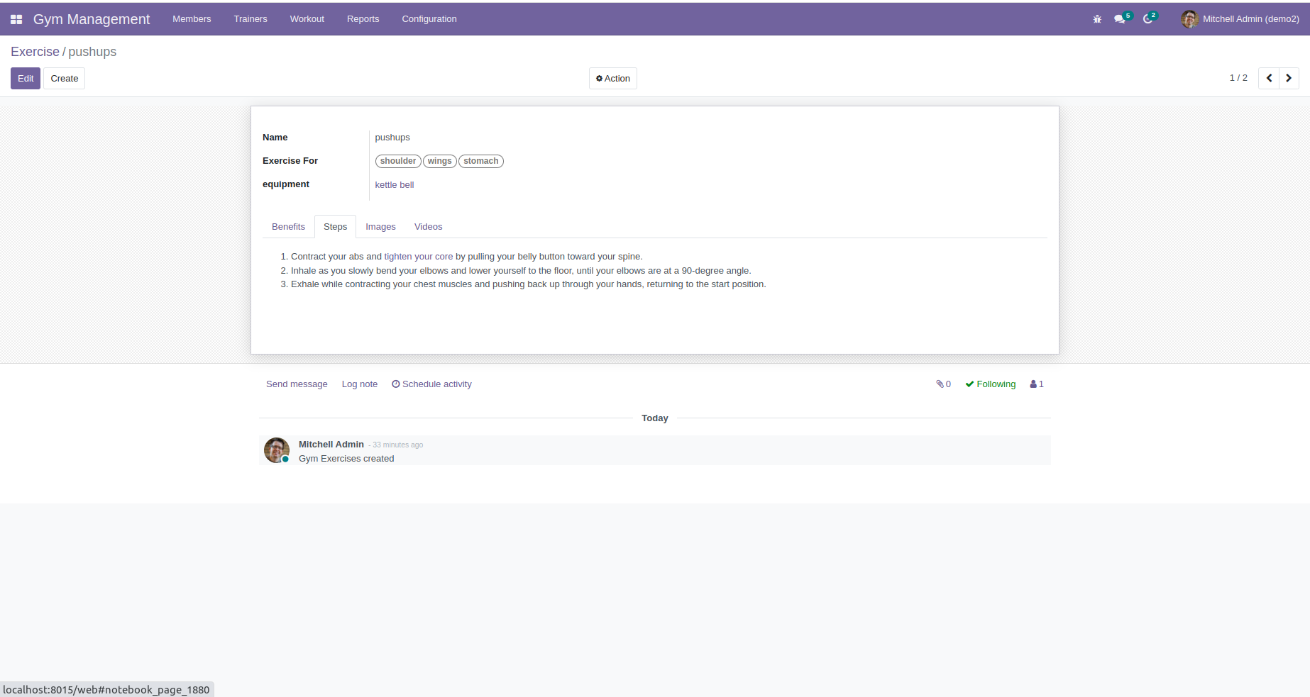 - Create Exercise with thier attributes like benefits,steps,images etc