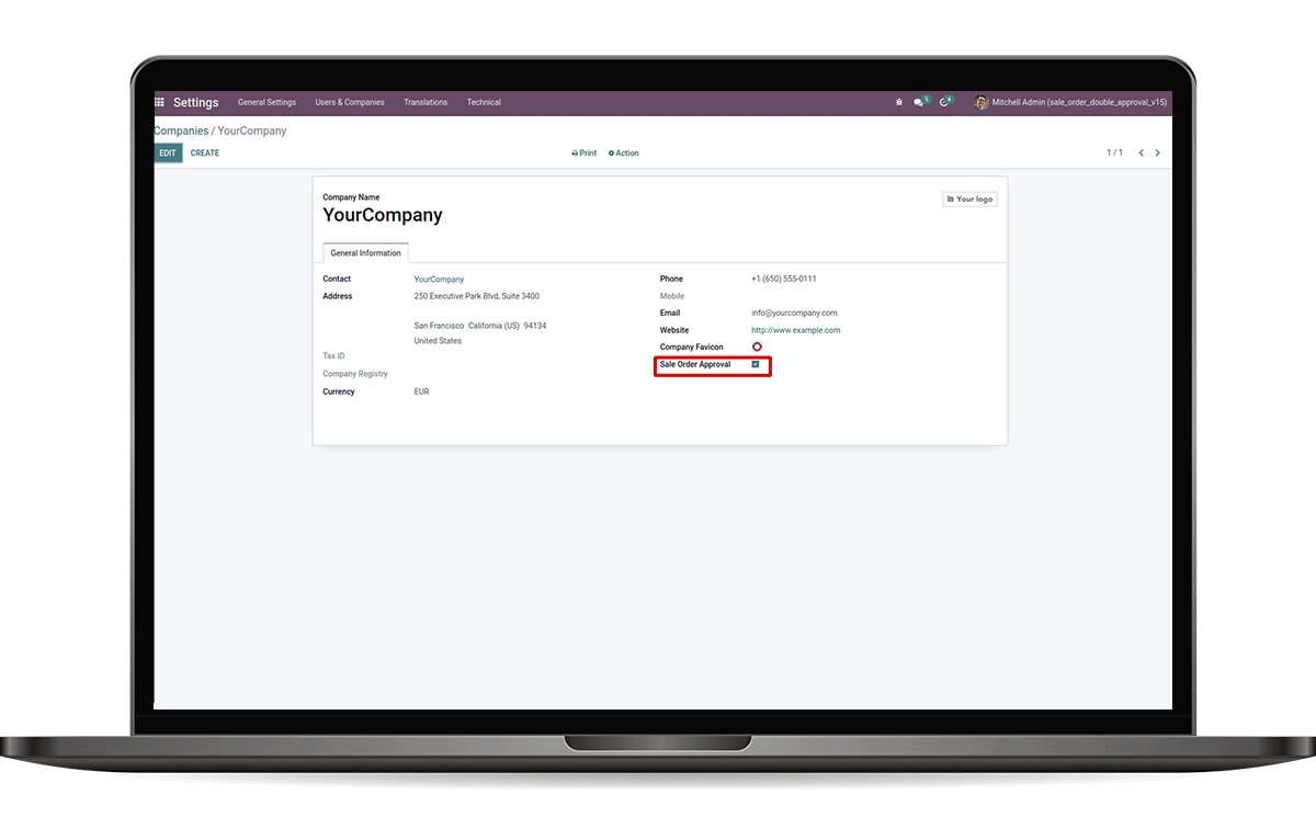 Odoo Sales Order Double Approval Module will allow only the authorised person to approve the sale order, if the sale order amount exceeds the minimum amount.