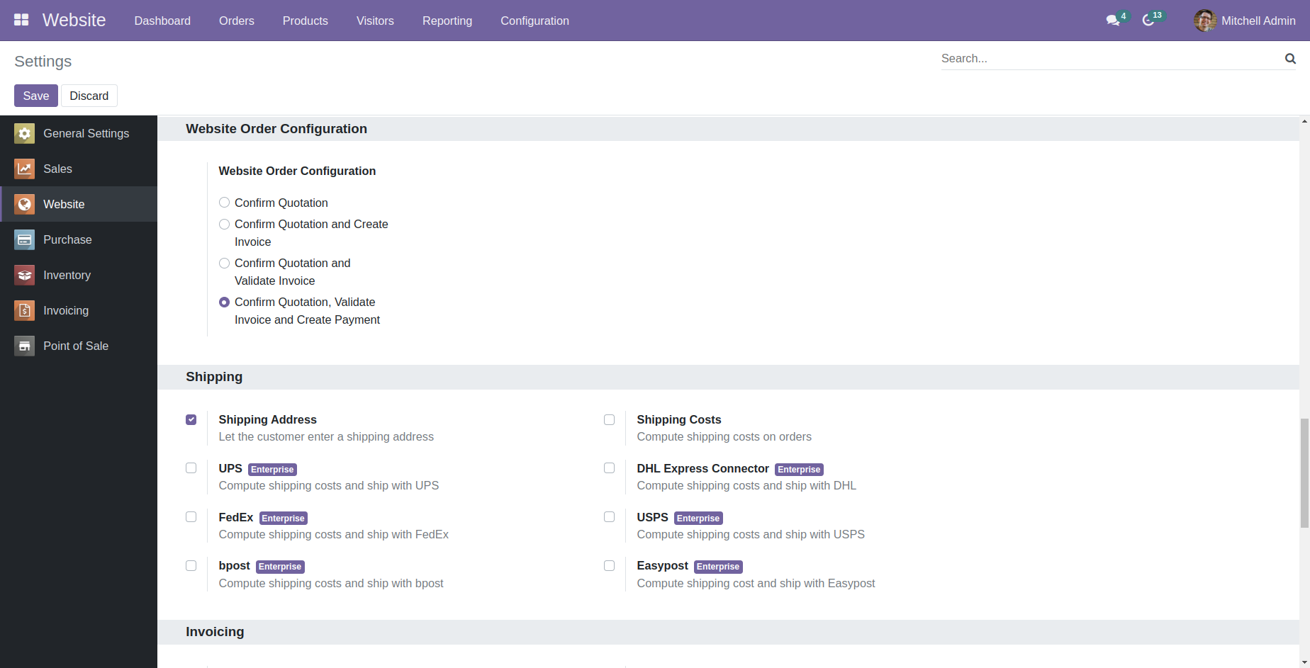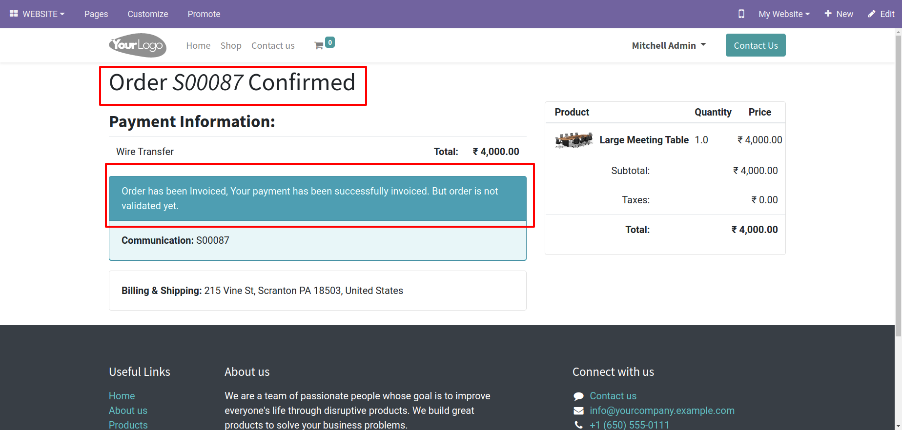 Automatically confirms the order and validate the invoice when an order is placed from website