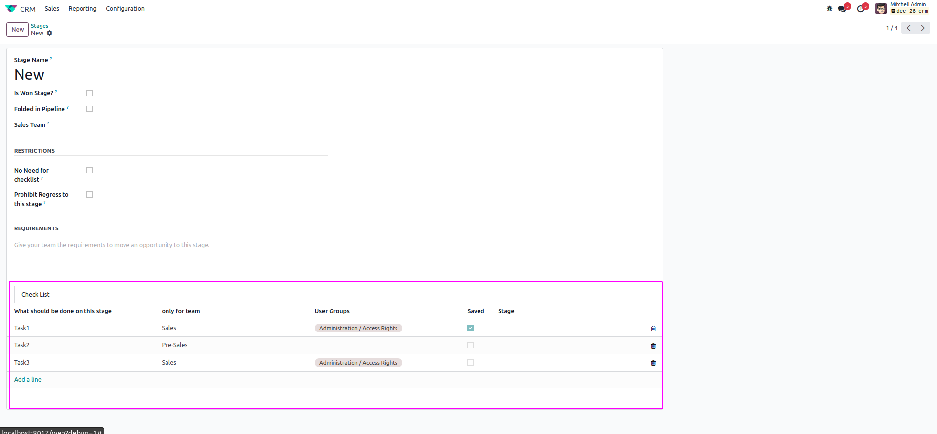 This Module will Provide Check List for each Pipeline Stage to Control Requirements, Fulfillment and to make sure that each action is fully Approved by Responsible Users.