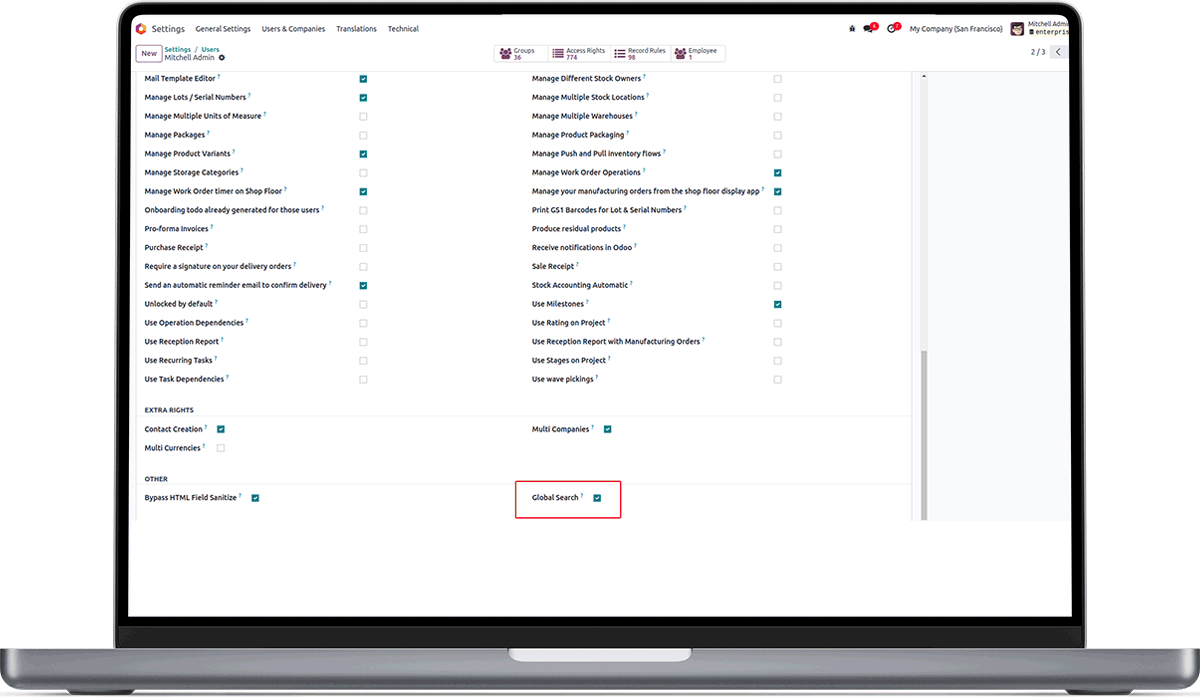 User gets a new module where he can make advance and simple search in different modules Also possible to search using different attributes like name, reference, number, etc.