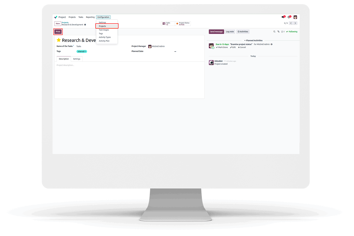 To Get to the Project, Go to Configuration -> Projects.