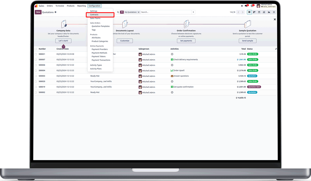 Now the State of the Contract has been moved from 'New' into 'Ongoing'.