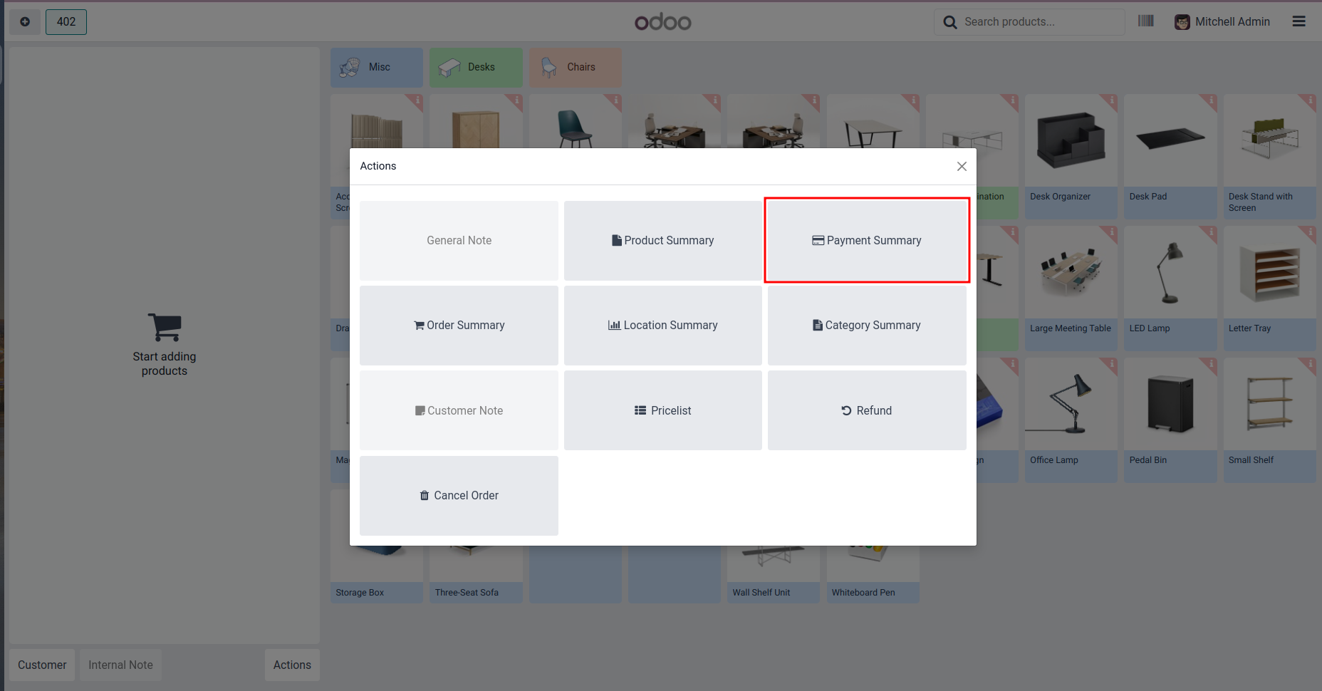 Click Product Summary from POS Screen.
