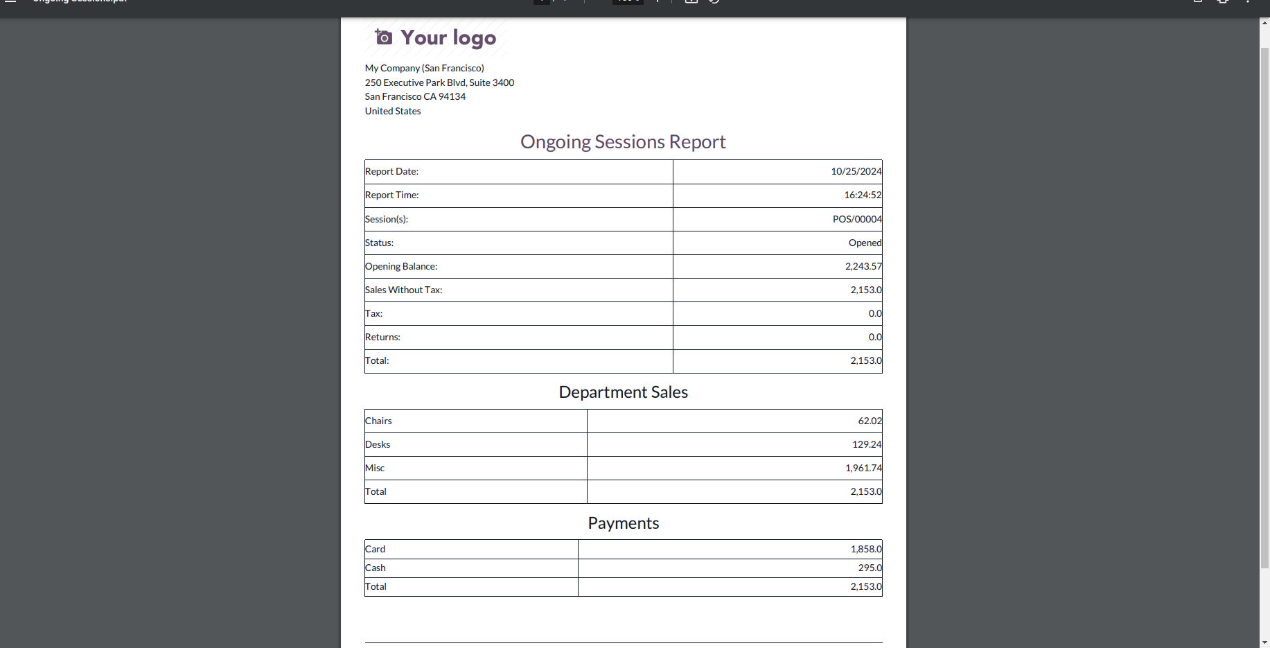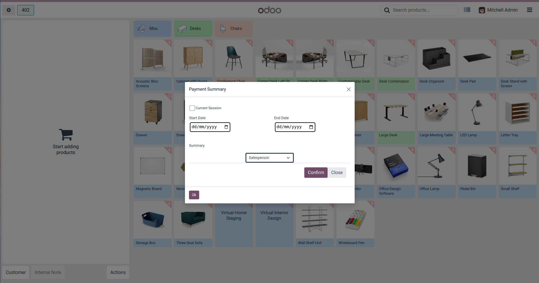 Payment Summary from POS Screen to get payment details of current session/ All sessions within a period