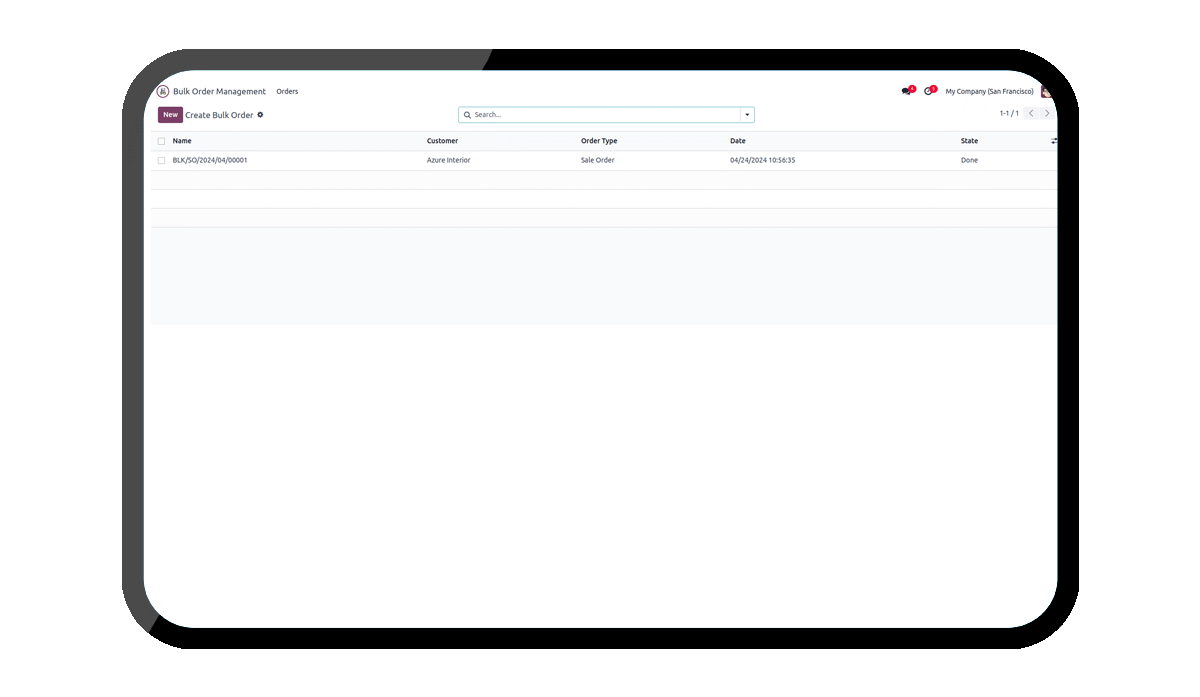 Click on the button CREATE SALE ORDER to create a Sale Order from the bulk order.