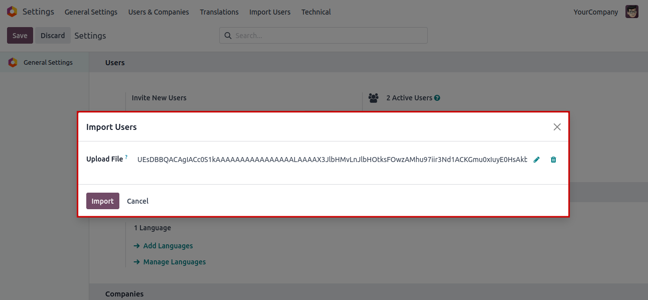 In default Odoo we need to configure users access rights after adding them into Odoo ERP system. This app allows to import users with UserName, Email ID, Language, User Type, Access Group, Access Technical Settings all these important fields.