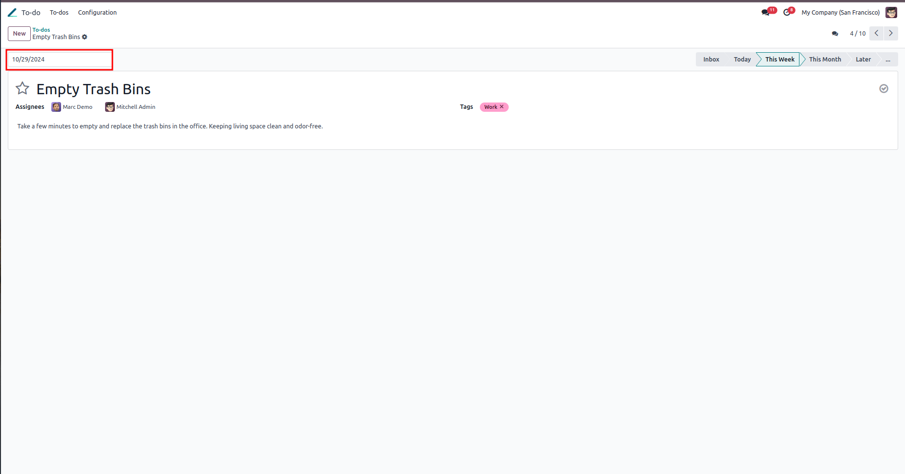 Under Color interval, create an interval of days: days from the current date to the deadline date. Lower limit and upper limit are used to create the interval.