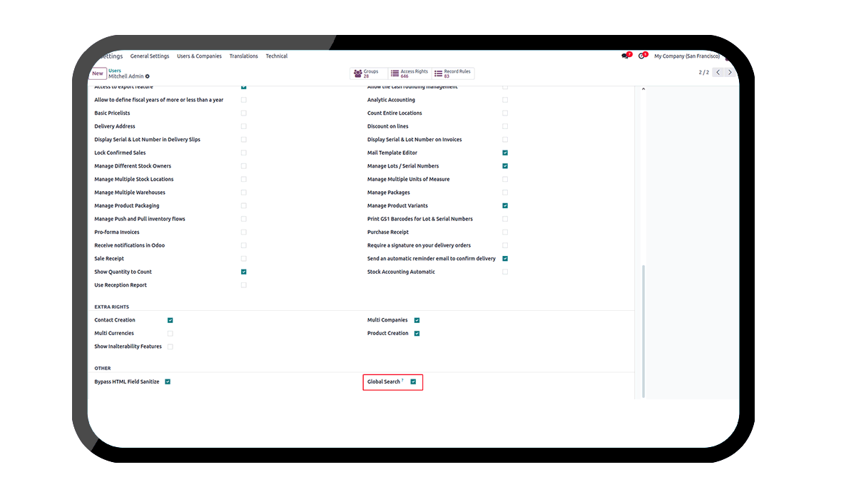 Effortless Search for Customers, Products, Sales, Purchase, Inventory and Accounting modules records.