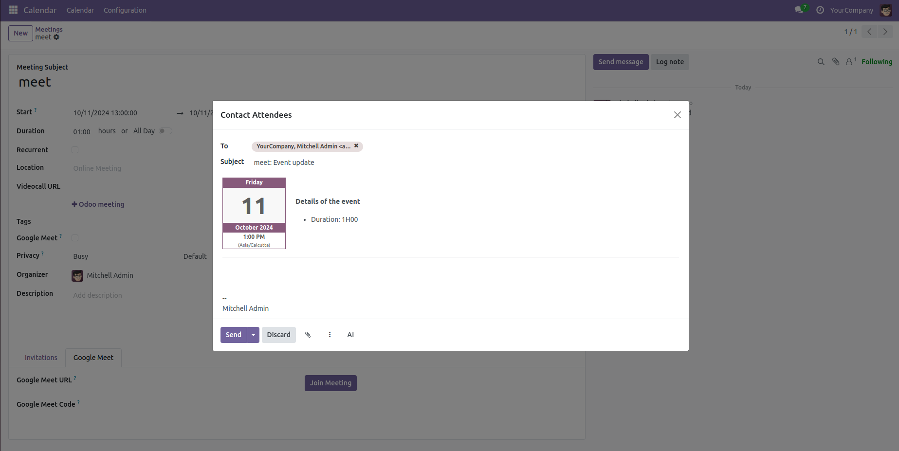 Google Meet Calendar Integration allows to open google meet in odoo.