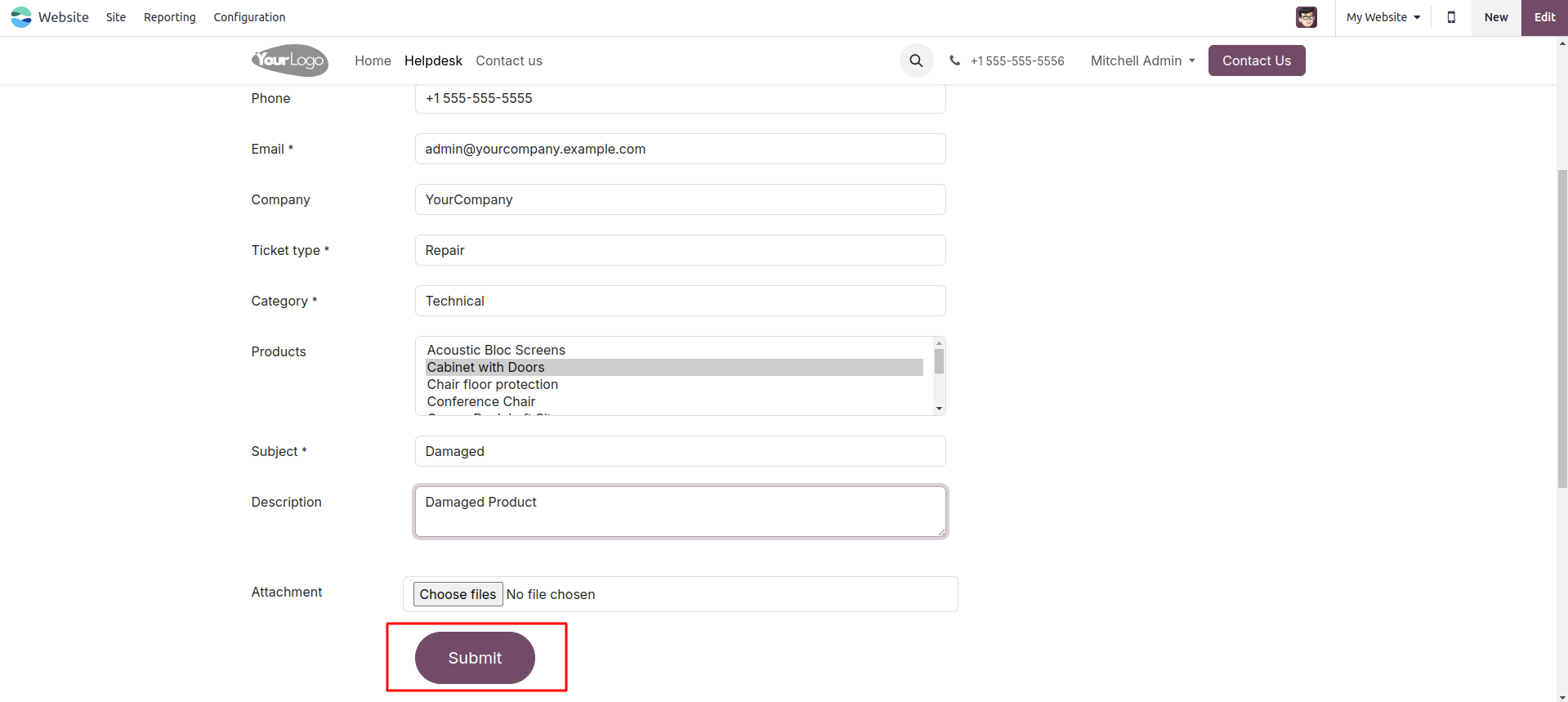 After completing the details regarding the helpdesk ticket. You can click on the "Submit" button.