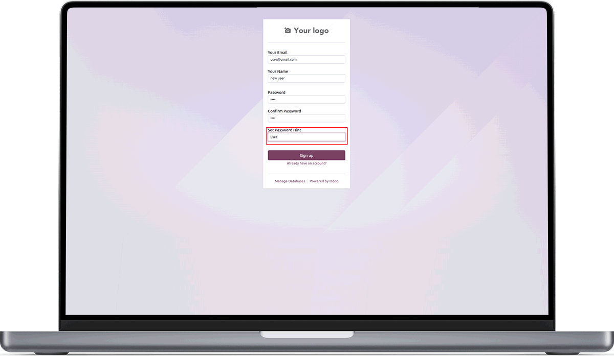 The Password Hint field in User form allows the User to set a Password Hint while Signing.