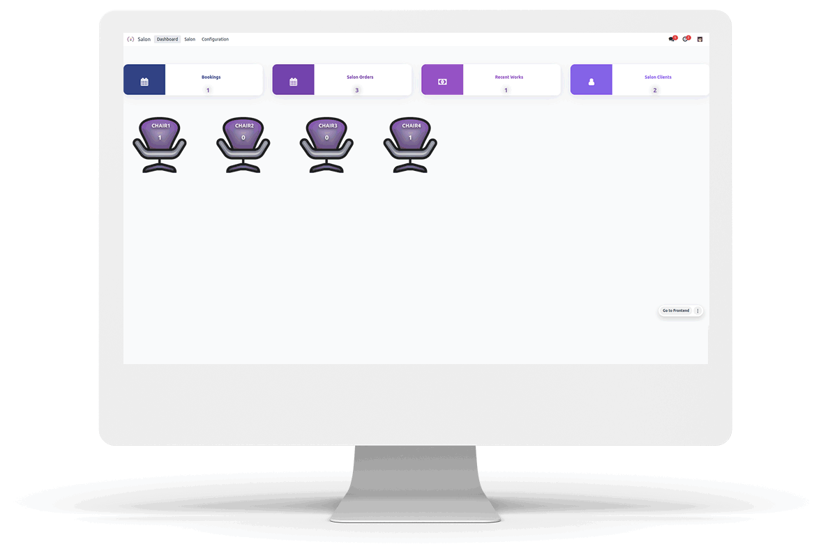 You can see all the salon orders in different stages in the kanban view. The salon order for the chairs, which are not available for online booking, can be created from here. The stages of the salon orders can be changed by dragging and dropping the salon orders in different stages. The list view for the salon orders is also there.