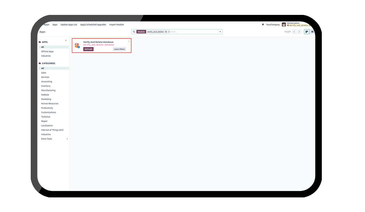 Ensure the module is installed in the database and select the database that we need to delete.