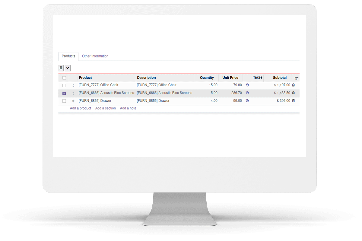 We can see a new widget with two buttons and selection option for One2Many fields. .