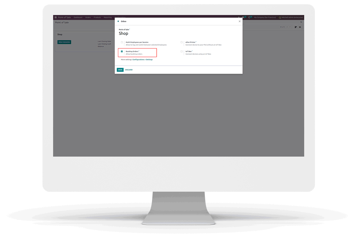 Go to PoS Settings -> Enable Booking orders. After enabling this, the options to book orders and screen of booked orders will show in POS session.
