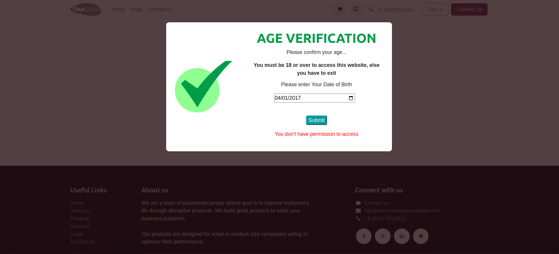 This Module Acts as a Gate,Allowing Only Users Over the Specified Age Range to Access the Platform.