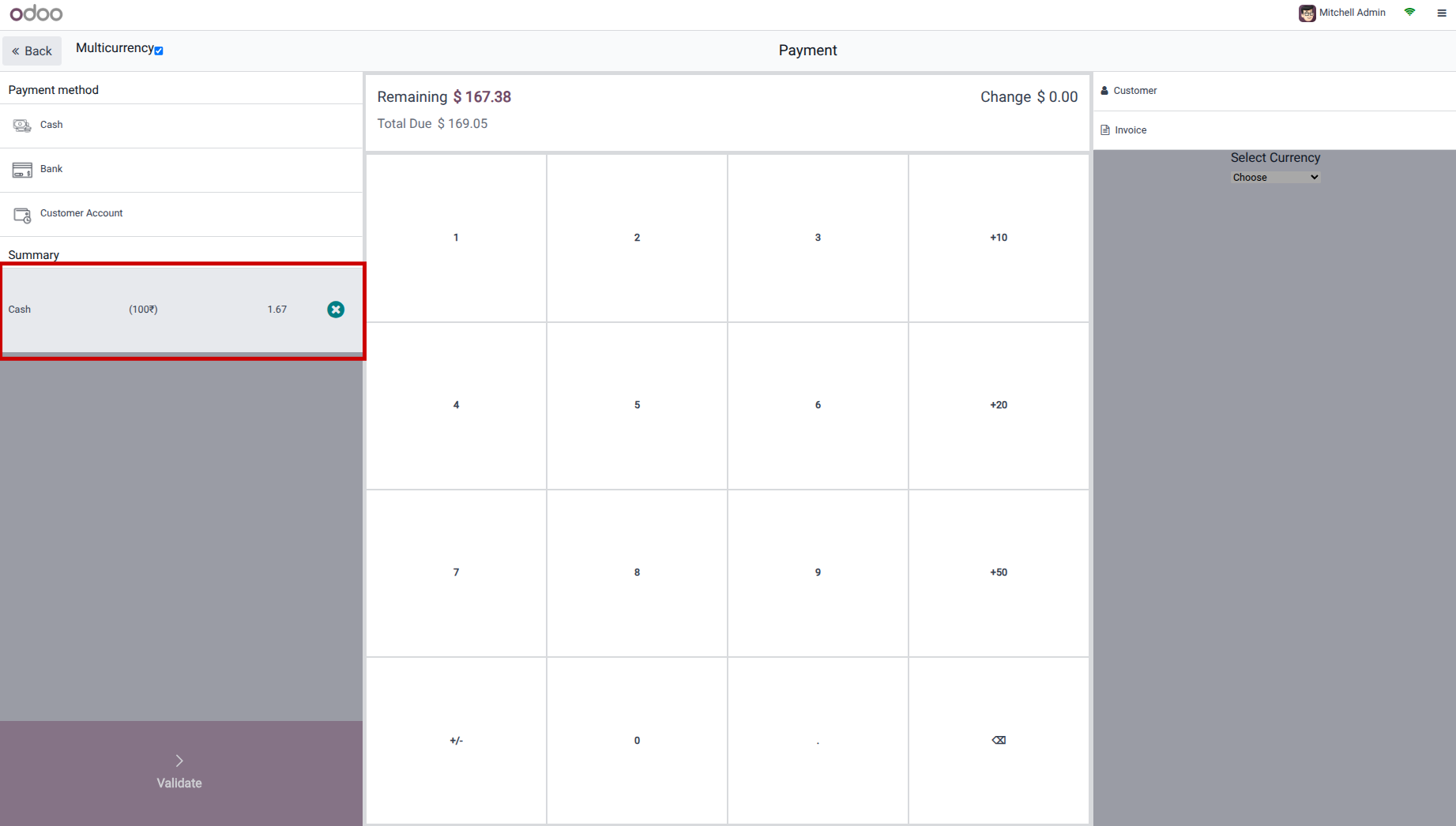 Convert the remaining payment currency amount based on the selected currency from POS payment screen.