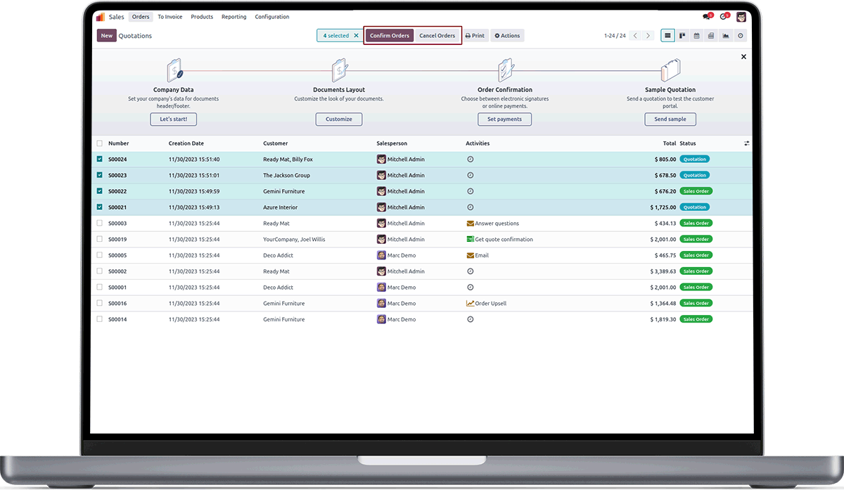 Multiple order Confirm and Cancel in Sale/Purchase of Odoo 17 Community Edition.