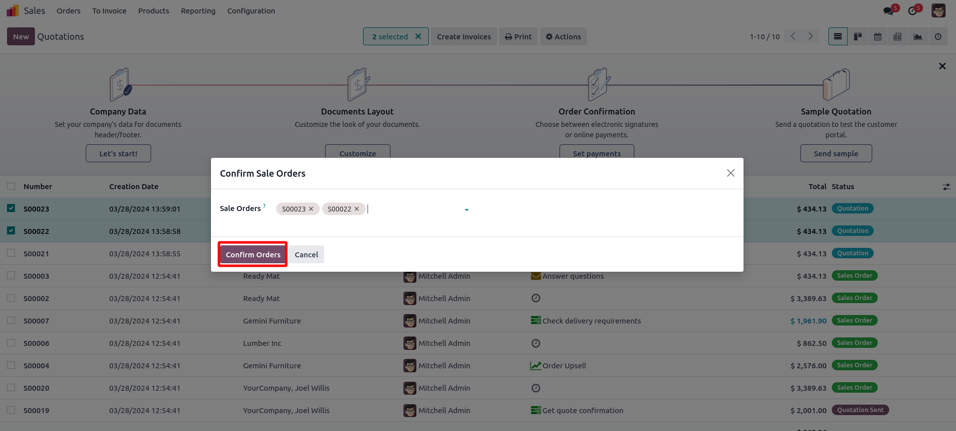 Can Confirm Multiple Sale Orders and Purchase Orders.