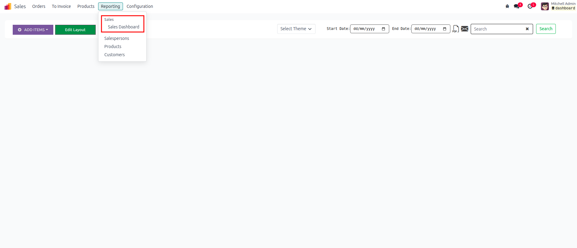 Customize the Dashboard Theme via Configuration > Dashboard Theme. Then, choose the configured theme for your dashboard.