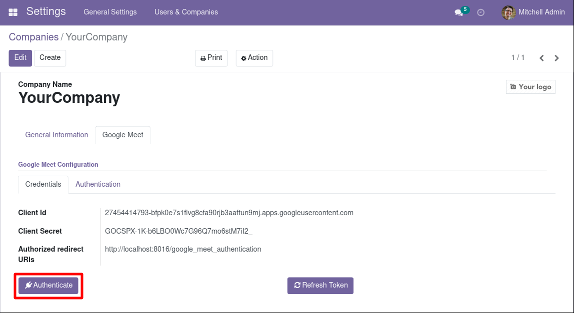 After successful authentication, now you can create Google Meetings to your Odoo calendar.