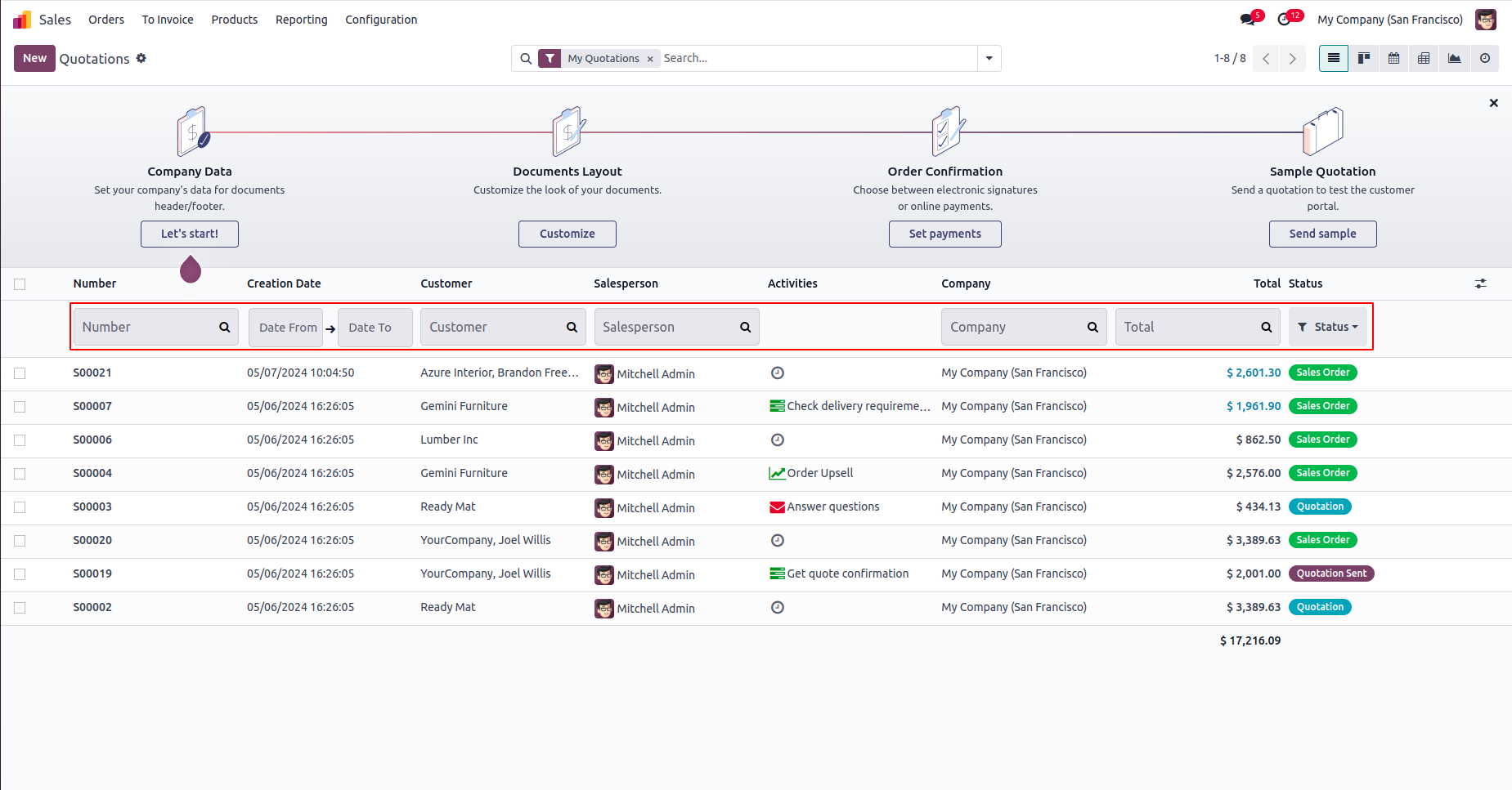 After installing this module, users will notice an additional row in every tree view, incorporating column filters. Users can effortlessly search through text, date/datetime, many2one, integer, and float columns.