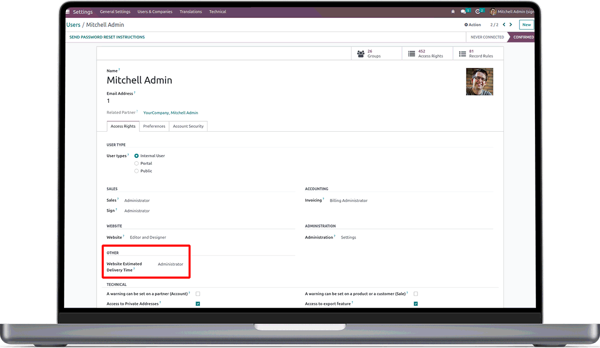 Admin will be able to set the Estimated Delivery Time backend based on PIN Code.