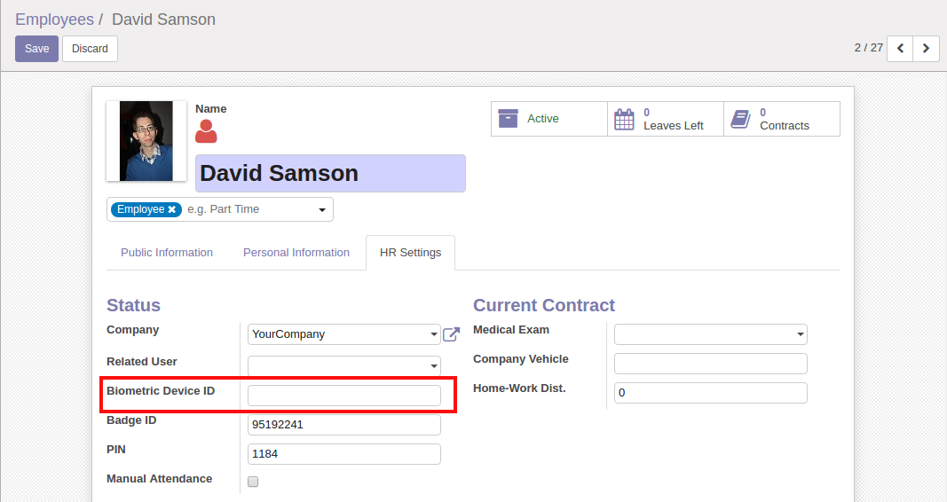 ☑ Ingrates biometric device(Face+Thumb) with HR attendance. ☑ Option to keep the device attendance log in Odoo. ☑ Option to clear the device attendance log from both device and Odoo. ☑ Automating HR attendance. ☑ Option to configure multiple devices.