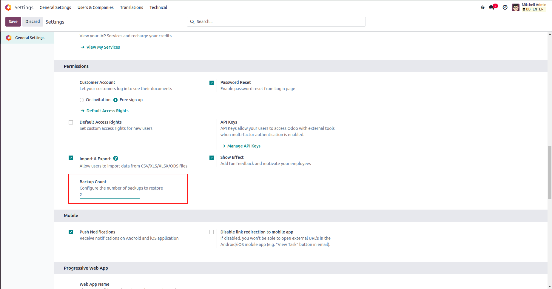 Go to Setting --> Technical --> Backup Configuration to configure backups.