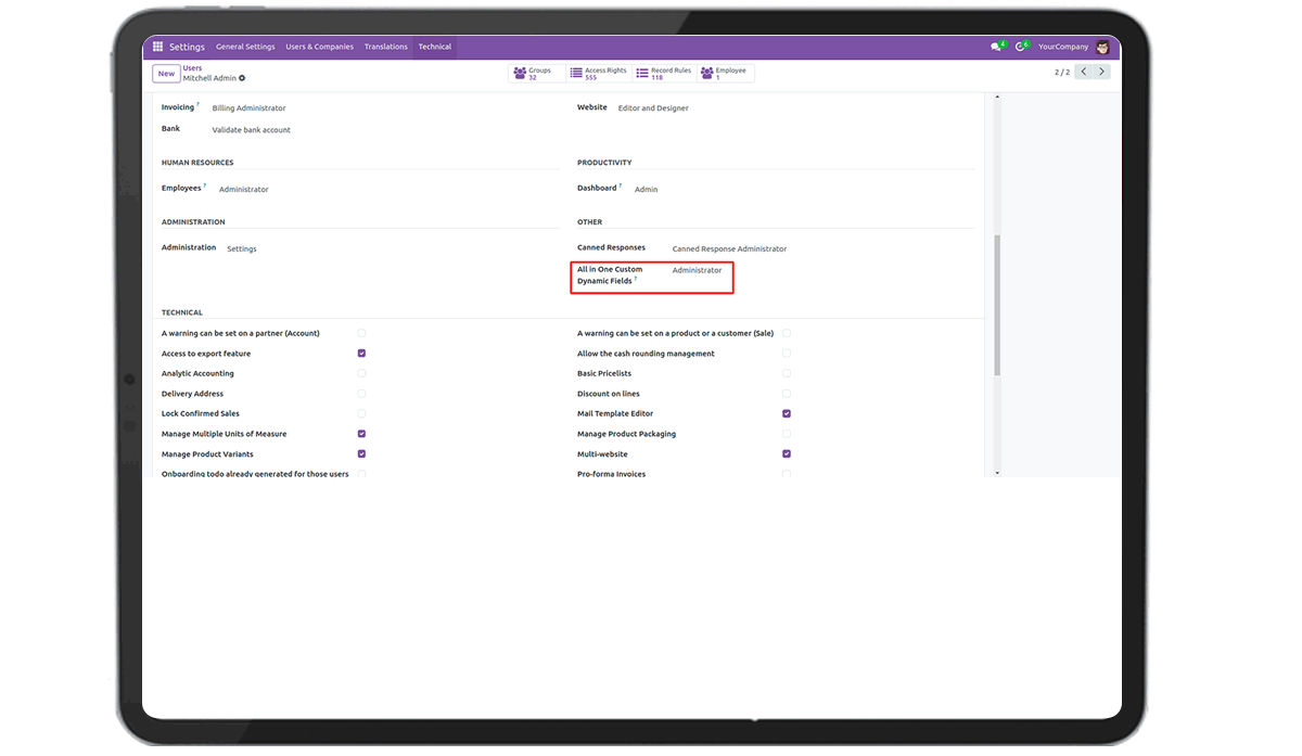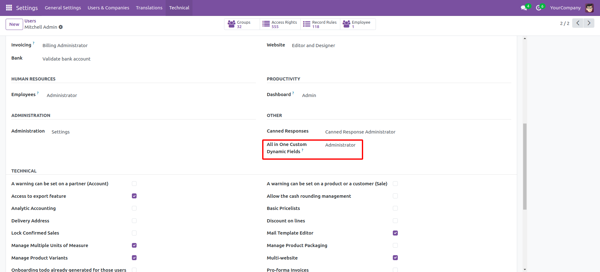 After installation, give the user access to 'Create Custom Dynamic Fields' from user settings.