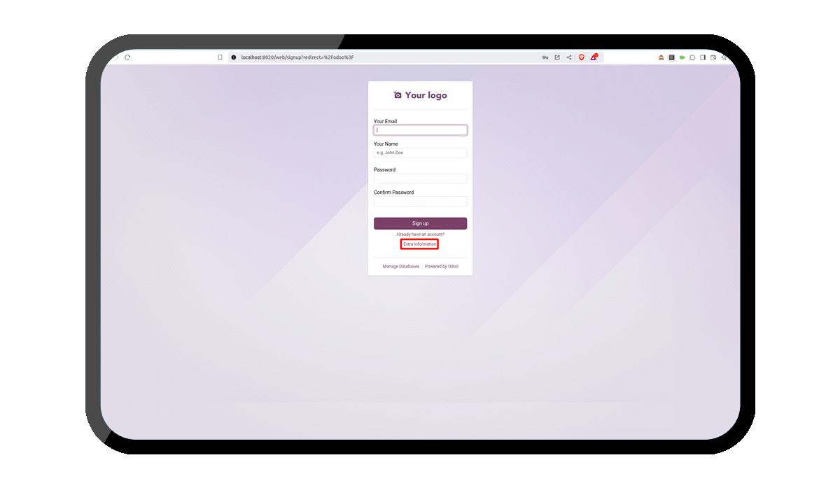 This odoo app is helpful if you need to customize the signup page with extra information.