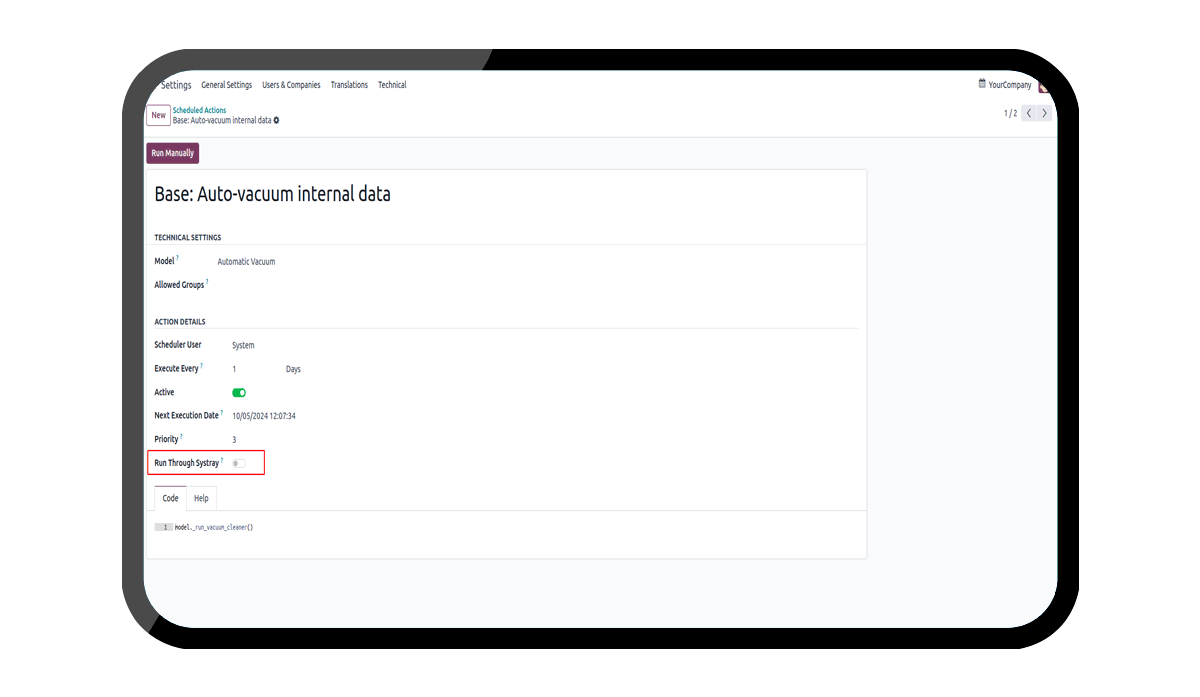 Enable the boolean field to run scheduled actions through systray, Only enabled scheduled action are shown on the systray.