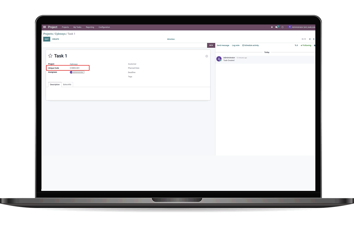 This module helps you to track each tasks with the unique code which is generated automatically.For projects a code can be set which will be used to generate the unique serial code for that project's tasks.Hence, this makes the tracking of tracks by project easy and convenient for the users.