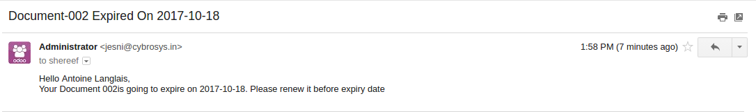 Each and every detail associated with an employee is useful for any organization for better Human resource management. So the employee documents with such necessary information must be saved and used accordingly. 'Employee Documents' is a useful tool that can help you to store and manage the employee related documents like certificates, appraisal reports, passport, license etc. The application also allows you to set an alert message on reaching the expiration/any other related dates of a document (like an expiration of passport)