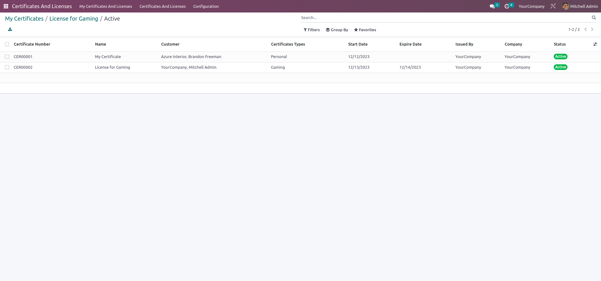 Certificate And License With Expiry Management Helps You To Manage Certificate And License Of Your Customers.You Can Manage All Certificate And License With Odoo.It Also Allows You To Manage Expiry Dates And Notifications