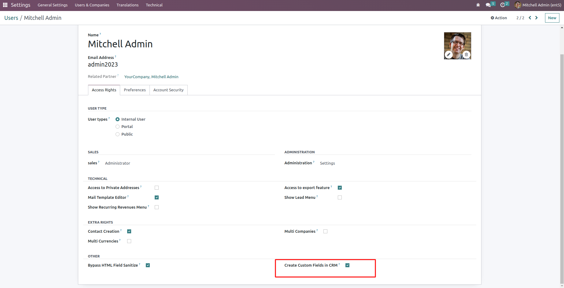 Go to users & Companies -> Users -> enable Create Custom Fields in CRM for user