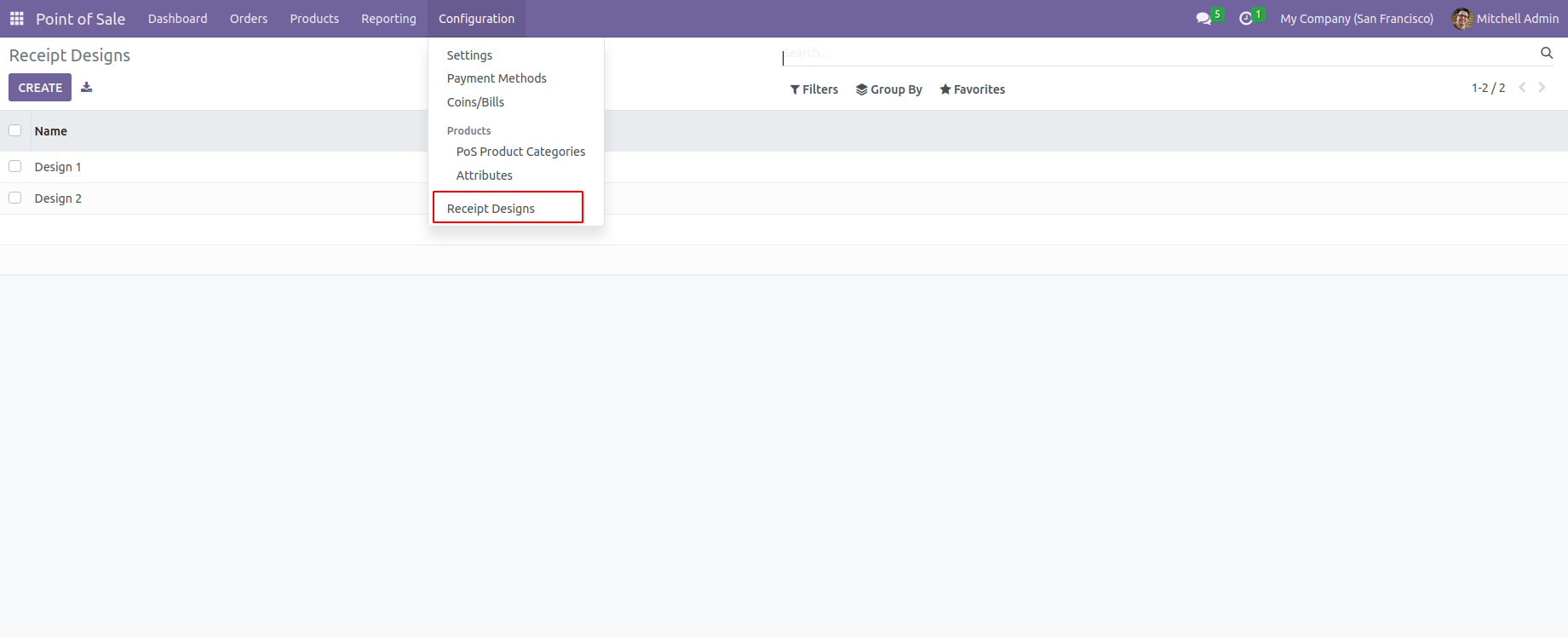 We can add the Receipt designs from the backend in the menu 'Receipt Designs'.