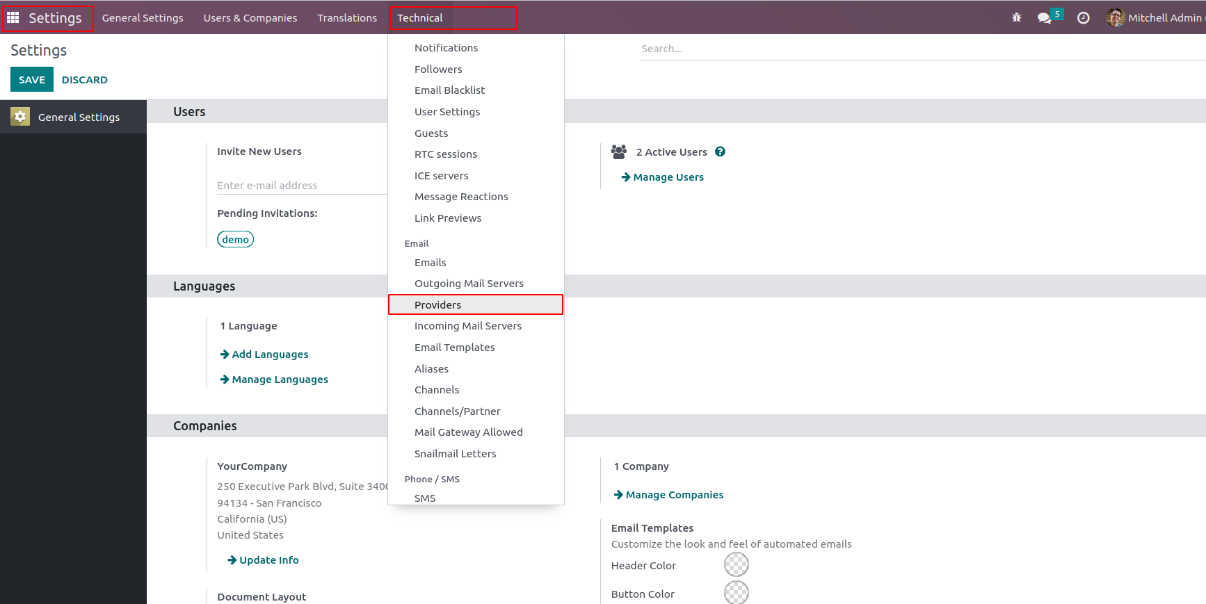 To create Providers, navigate to Settings -> Technical -> Providers.